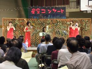 大正ロマンの面影を残す、四郷郷土資料館。 この前庭で始まった星空コンサートですが、23回と続いてきた事でお客さんも増え、前庭での開催が困難となってきたこともあり、今年も四郷小学校の体育館に特設ステージが準備されての開催となりました。 今年は、四日市市制111周年の協賛事業と言うことで、今回は諏訪太鼓チームの「御璃刃(おりじん)」と、女性5人による金管アンサンブル「アンサンブル・ロゼ」の演奏がありました。 |