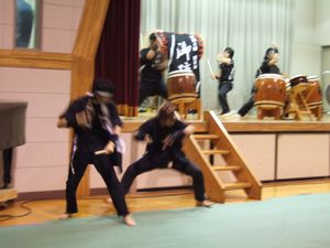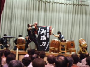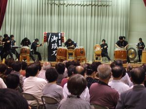 17:30の開場にあわせ、お客さんが集まり始め、用意された200席の椅子がどんどん埋まっていきました。 後から椅子も追加で並べられていました。 主催者側の発表では、来場者数250人。 「御璃刃」や「アンサンブル・ロゼ」のファンの方も、たくさん訪れたようでした。 18:00よりスタート。 まずは勇壮な諏訪太鼓で幕開け。 若いエネルギッシュな演奏に圧倒され、ぐいぐい引き込まれていくようでした。 四日市市制111周年を祝うに相応しい演奏でした。 |