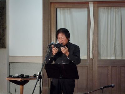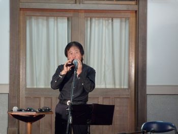 | 演奏曲は他に、 ・風にのって ・あしたの空へ(いなべ藤原町のイメージ) ・かげろう ・神々の戯れ ・母なる川矢作 (以上 曲:黒野宏通) 一人二重奏 ・朧月夜 ・ふるさと などでした。 |