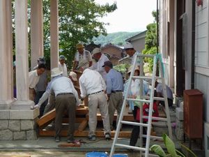 | 四郷郷土資料保存会、四郷まちづくり協議会 文化部の皆さんのご協力を得、 会場が設営されました。 ![]() |