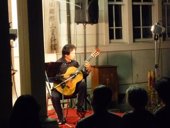 平成21年(2009年)9月26日 土曜日 大正ロマンの面影を残す、四郷郷土資料館。 この前庭で第24回星空コンサートが開催されました。 今回はオカリナ奏者の黒野宏通さんを迎え、様々な種類のオカリナとギターの音色を楽しませていただきました。 |