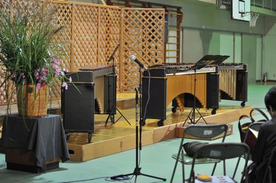 2016年は、郷土資料館の南法面工事により資料館での開催が出来ず、四郷小学校体育館での開催となりました。 第30回コンサートの幕開けは「星の世界」です。 3台のマリンバが織りなす、美しく温かいハーモニー。 会場はマリンバの音色に惹き込まれました。 ほとんどの曲は1台のマリンバを一人が演奏するスタイルでしたが、「道化師のギャロップ」では1台のマリンバを三人で演奏。 テンポの速いこの曲も、3人の息の合った演奏は圧巻でした。 下に記載したプログラムでもわかるように、クラシックやポピュラー、そしてディズニーの名曲から時代劇のテーマソングメドレーなど、幅広い選曲で楽しませていただきました。 改めてマリンバの音色に魅せられたひとときでした。 |
