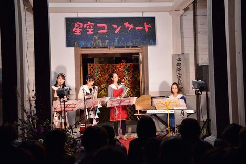 第32回 平成29年(2017年)9月30日 土曜日 名古屋を中心に、関東や関西でも演奏活動をしているポップ・クラシック・カルテットのFlyingDoctorさん。 鍵盤ハーモニカを中心に、ヴァイオリンやウクレレ、ピアノやトイピアノ、カホンなどのパーカッションにアコーディオンやバスクラリネットなど、たくさんの楽器を自在に操る、実に楽しい演奏をされる皆さん。 FlyingDoctorさんを知ったきっかけは2016年夏。Youtubeで、とても楽しそうに演奏される姿を見て、「生演奏を聴きたい!」とその2ヶ月後ぐらいに予定されていた一宮市民会館で開催されたコンサートに伺いました。 このコンサートを聴いて、「こんなにも楽しそうに演奏される人たちがいるんだ!」って思いました。 クラシックやポップス、オリジナル曲など、どれもいろんな楽器を駆使し、まるでオーケストラを聴いているような心地よさと楽しさを兼ね備えたグループだと感じ、終演後思わず「星空コンサートで演奏を!」とお誘いしてしまいました。(笑) この楽しい演奏を是非沢山の方に聴いていただきたいと、その翌年2017年に実現させていただきました。 |