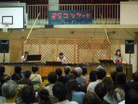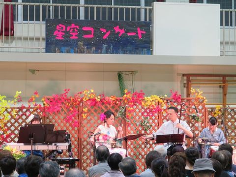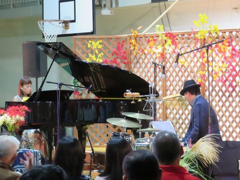 第34回 令和元年(2019年)9月28日 土曜日 ピアノとドラム・パーカッションのユニット「みずとたま」のお二人。 ピアニストの金沢昭奈さんは愛知県立芸術大学でピアノを学ばれた後、フランスに留学されてクラシックのみならず、JAZZも学ばれました。 金沢さんを知ったのは、名古屋市栄にある宗次ホールさんで弦楽四重奏(QuartetVitaさん)を聴いたときに、一緒に出演されていたのが最初でした。 その後、小規模な場所でパーカッションの三祢沢信さんと一緒に演奏された時に居合わせ、ピアノとパーカッションという組み合わせで、クラシックからポップス、ジャズまで演奏されているのを聴いて、魅せられてしまいました。 その後、機会がある度に演奏を聴かせて頂き、星空コンサートでも演奏して頂きたいと考えるようになりました。 昨年はコンサート開催時間に雨の予報がでていたこともあり、体育館での開催となりましたが、電子ピアノではなく、グランドピアノで演奏していただけたので、雨の予報が幸いしたように思えます。 この時の演奏(全部ではありません)がYoutubeで聴けますので、もう一度聴きたいとか、聴き逃してしまった方は是非ごらんください。 星空コンサート実行委員会チャンネル |