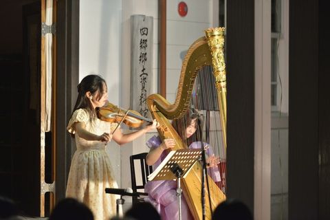 第31回 平成28年(2016年)10月15日 土曜日 伊勢市在住のヴァイオリニスト高橋真珠(たかはしまたま)さんとハープの堀越恭子さんによるコンサートでした。 当委員会のホームページを見て頂いた高橋さんからお問い合わせいただいたのですが、出演者を決めるその年の最初の委員会開催日、その会議の30分前に自宅で倒れて入院というバタバタの中でしたが、委員会メンバーのサポートのおかげでスムーズに会議が進み、出演者が決まった、忘れられない年となりました。 出演頂くにあたって、お客さんにインパクトを与えられる形は何だろうと考え、あまり聴く機会がないだろうと、ハープとのデュオを高橋さんに提案したところ快諾いただけました。 そしてハープ奏者の堀越さんは、高橋さんと演奏できるならと、東京からグランドハープを愛車に載せて来てくださいました。 とてもありがたく、嬉しかったです。 |