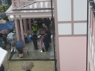 | 玄関の車寄せの所で、テープカットが行われました。 | テープカットのあと一般公開となった初日、200名超 の方が新しくなった資料館を見学されました。 |